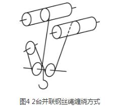這種方式因結(jié)構(gòu)形式加大,使得對(duì)適用場(chǎng)合提出更高要求,不能很好地適應(yīng)空間小、吊鉤覆蓋范圍要求廣的場(chǎng)合。同時(shí)由于實(shí)際應(yīng)用過(guò)程中鋼絲繩內(nèi)應(yīng)力的釋放,在使用一段時(shí)間后,會(huì)出現(xiàn)鋼絲繩出繩和入繩不能同步,導(dǎo)致亂繩現(xiàn)象。
