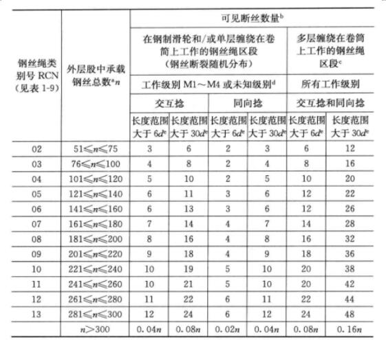 d)可將以上所列斷絲數(shù)的兩倍數(shù)值用于已知其工作級(jí)別為M5-M8的機(jī)構(gòu);參見(jiàn)GB/T 24811.1—2009.