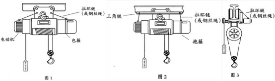 捆綁移動(dòng)小車(chē)、大車(chē)上電動(dòng)機(jī)與減速箱的方法:捆綁移動(dòng)小車(chē)、大車(chē)上電動(dòng)機(jī)與減速箱方法,是在電動(dòng)機(jī)的起吊環(huán)上串接環(huán)鏈,串接環(huán)鏈另一端固定在運(yùn)行小車(chē)或大車(chē)滑輪夾板外側(cè)上,也可固定在滑輪的夾板上端(見(jiàn)圖3)。