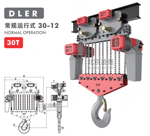 30噸DLEK環(huán)鏈電動葫蘆運(yùn)行式制動裝置:此裝置可以實現(xiàn)在電源切斷時瞬間剎車。